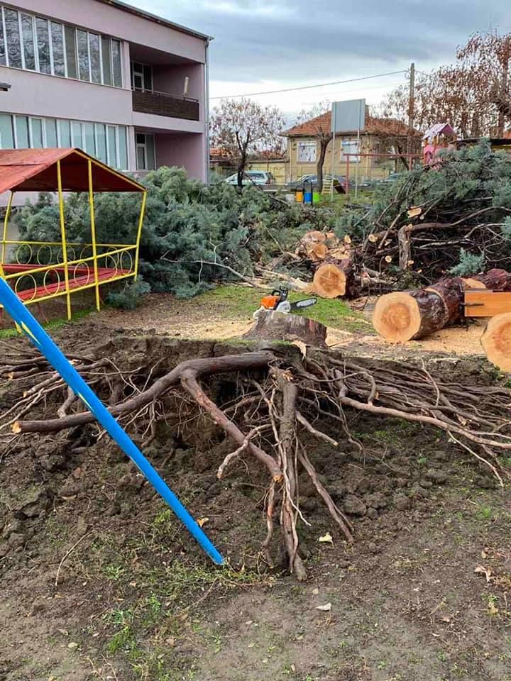 Щети от изкорененото дърво в Куртово Конаре няма и катерушките са запазени. Най-важното е, че не е имало деца в момента в двете градини и щетите са само материални.