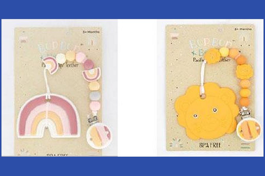Забранени за продажба са и два модела бебешки чесалки за зъби с номера BBOPE-12-P и BBOPE-21-L на бранда Danbar и отново с произход Китай. Опасността при тях е, че верижката може да се разпадне на малки части и при поглъщане от детето да предизвика задушаване. Артикулите са изтеглени от пазара и от крайните потребители.