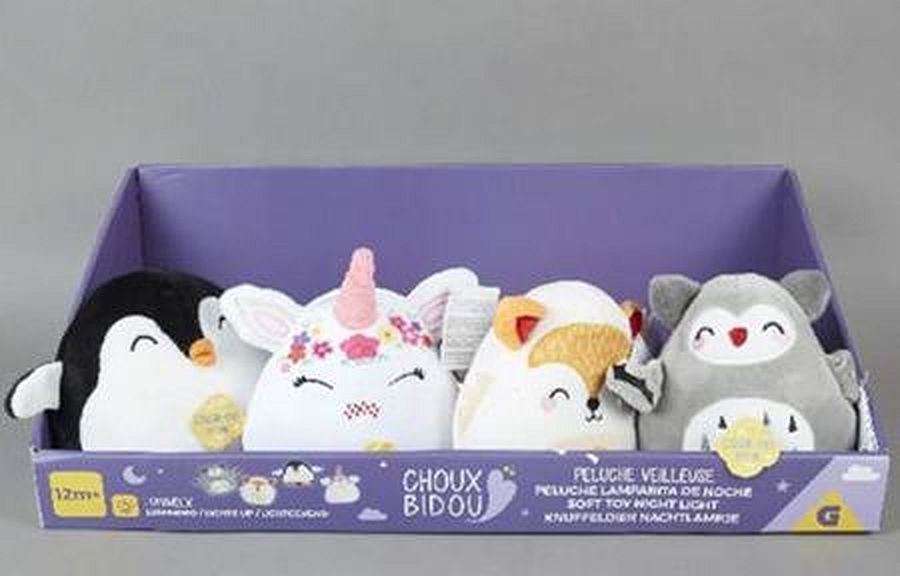 Меки играчки с наименованието Peluche veilleuse на бранда Choux Bidou във формата на пингвин, еднорог, мишка и лисица също са спрени от продажба. Те имат функцията на нощна лапма, която се захранва от клетъчни батерии. Могат да бъдат отличени по артикулния им номер 564384 и баркод 3491955643843. Опасността идва от обстоятелството, че шевовете на играчката не са достатъчно надеждни и детето може да получи достъп до пълнежа и до поставеното вътре електронното устройство.
